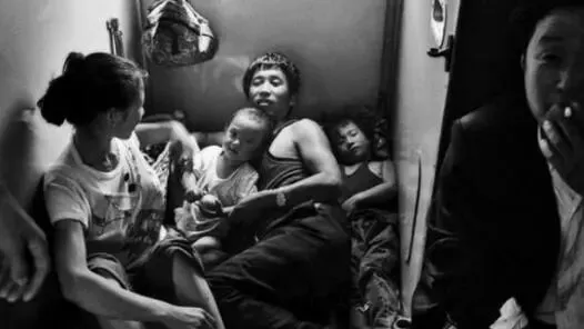 1990年代的绿皮火车,不但一票难求,并且一座难寻。买了票只有使你拥有进到列车车厢的支配权。可是车厢里的坐位则是刚性需求。图为并没有坐位的一家四口人迫不得已躺在车厢的过道里区。