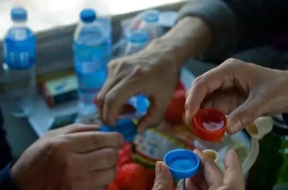 1990年代的绿皮车厢里,闲极无聊的同桌四个在用矿泉水瓶盖喝起了酒。