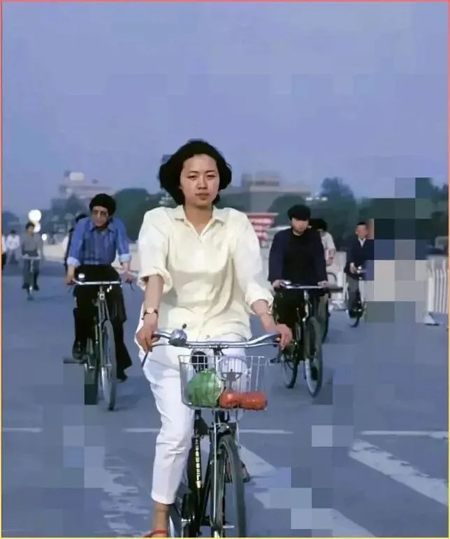 这张照片.里的女子,骑着自行车.穿梭在.北京的大街上,车筐里还装着刚买的蔬菜。那时候的天空是湛蓝的,.街道上除了自行.车几乎看不到汽.车。记.得吗,那.时候能有一辆飞鸽牌或者永久牌自行.车,就是家里的大件了。女.孩子们穿着.白衬.衫,扎着麻花辫,骑车的姿态优雅又从容。那个年代的幸福.,.其.实就藏在这些简单的日常里。