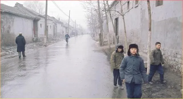 这条泥泞.的乡间小路,几个孩子放.学回家的场.景。道路两旁是低矮.的.平房.,天空灰蒙蒙的,却挡不住孩子们回家的急切心情。那时候的农村还很落后,.但.家的温暖却是.最真实的。