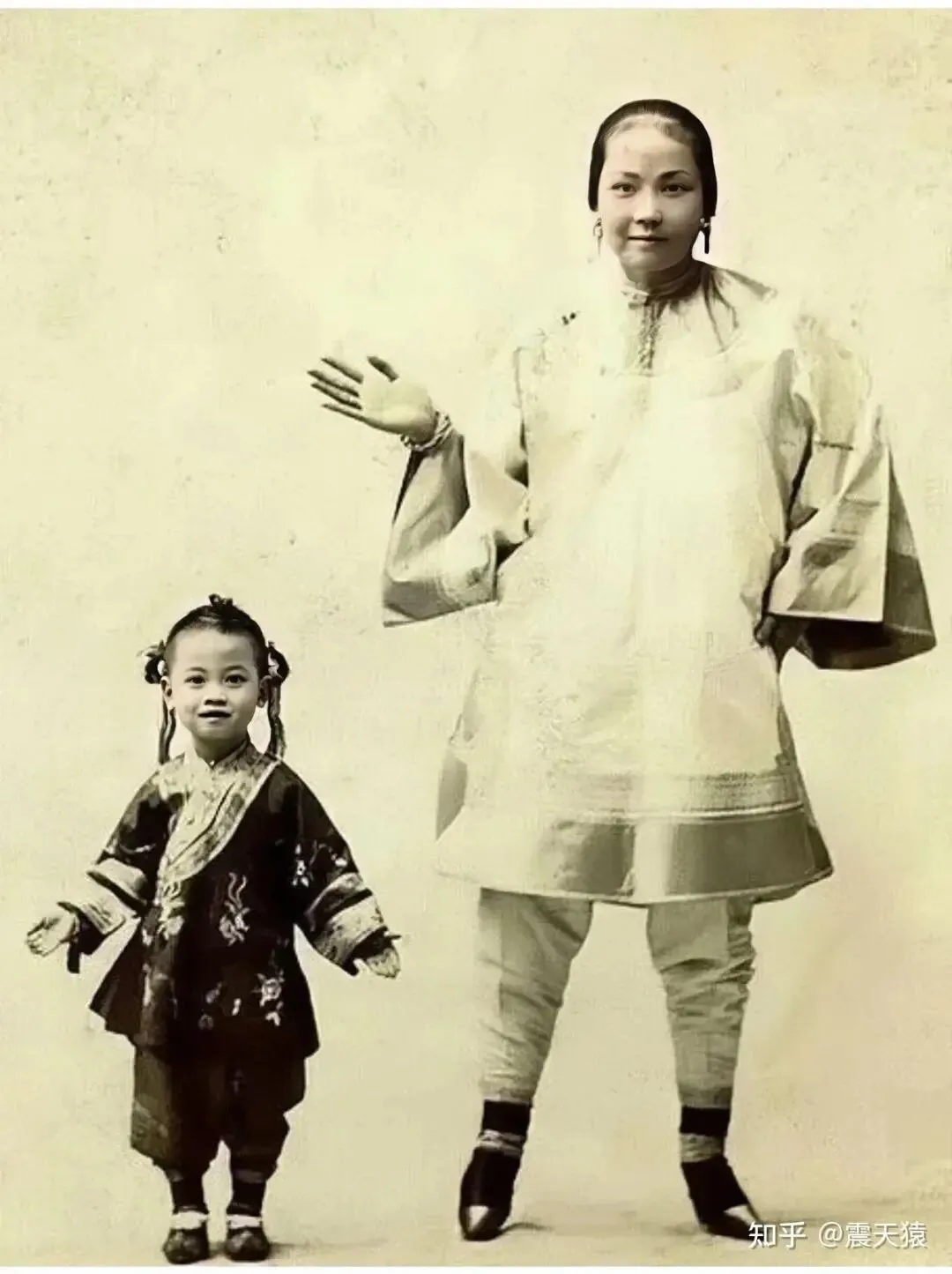 11.清朝的亲子照,算是老照片里最会凹姿势的母女了,那个年代流传下来的照片里,人们的精神状态大都是阴沉沉的,放到现在这位母亲也是个有趣的灵魂吧