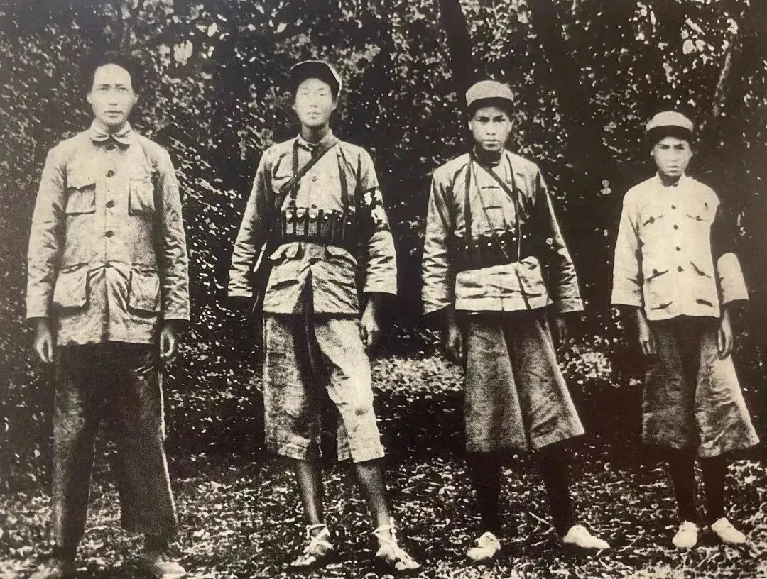 1934年,毛泽东和警卫员在瑞金 。(左二起:吴光荣、陈昌奉、戴田福)