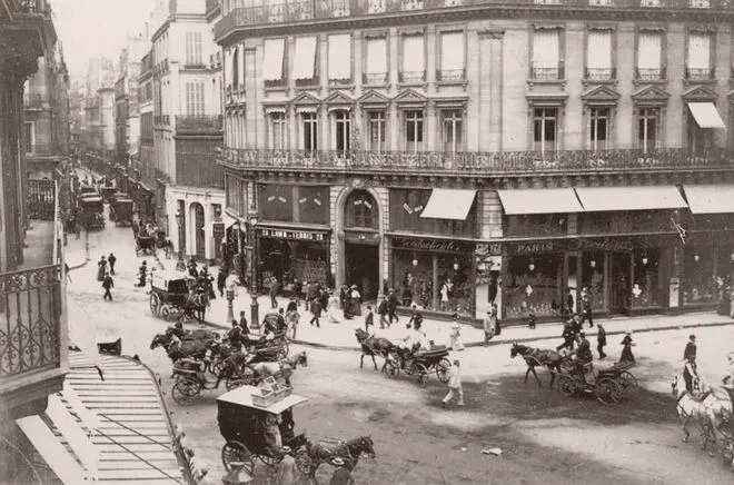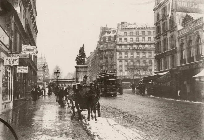 20世纪初的法国首都巴黎,大街上跑着不少的马车。