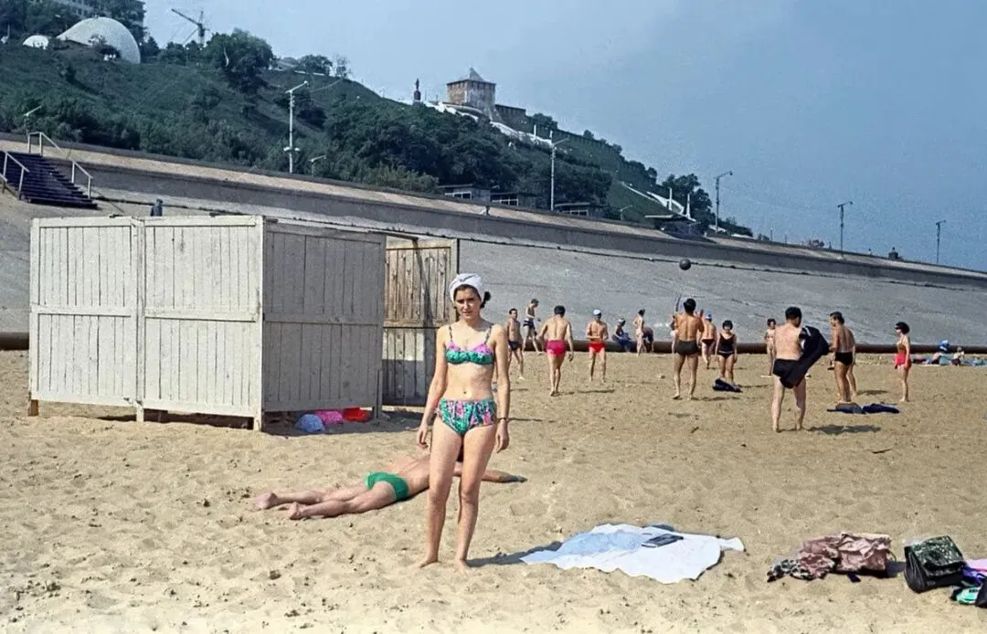 下图:伏尔加河畔的沙滩,位于下伏尔加河滨河路。戈尔基市,1968年。
