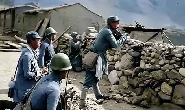 第三张一下就把战场气氛拉出来了。石头垒成的掩体不高,后面就是村屋,机枪架在前面,几个人分工配合,有的警戒,有的准备射击。没有电影里那种夸张的爆炸特效,反而更让人心里一紧。