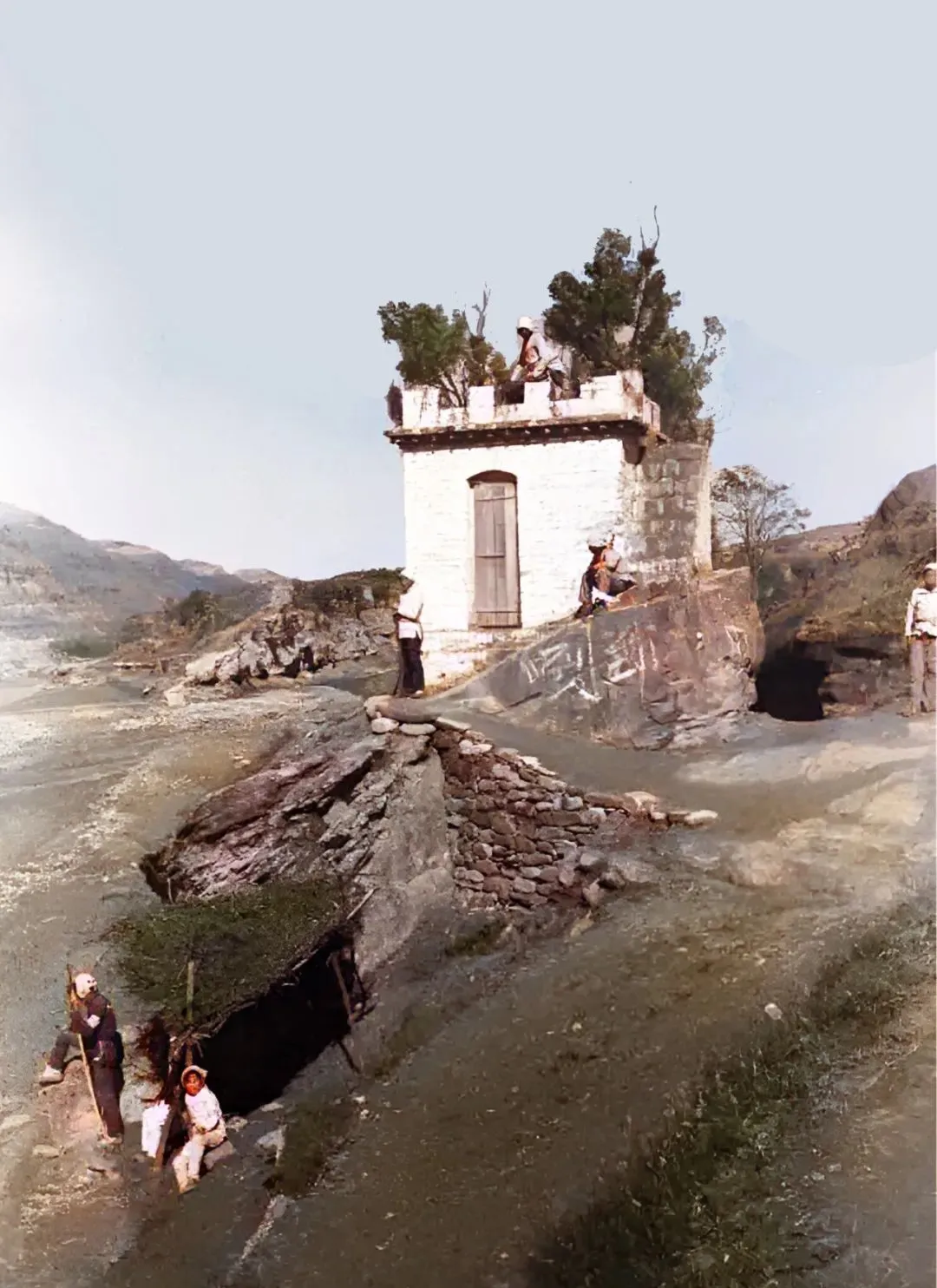 哨卡就在村口高坡处,土坡顶上盖了一间望楼,砖墙白得发灰,屋顶用树枝点缀,守岗的民兵坐在最高点,一手搭着膝盖,眼神往远处巡,望楼底下竟然有个天然山洞,有的民兵就蹲里面歇脚,或者藏点干粮杂物,这场景搁现在真少见了。