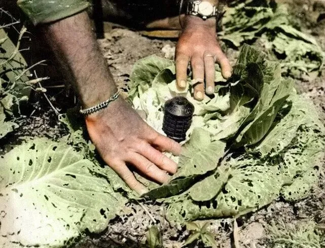 那年月,美军推着队伍走菜地,警觉性拉满,一个不小心就得炸掉半个班,这种伪装下来的玩意,用现在的话说得叫心惊胆战,小孩爬菜地摘白菜都得大人盯紧一点,时间过去了,这种残酷的小心思依然看着心有余悸,谁说战争只是前线开枪,后头每一口菜都危险。