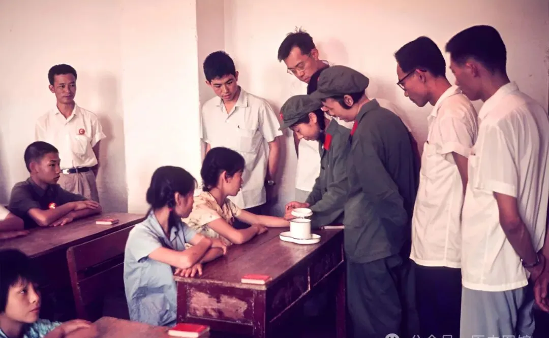 这个场景熟,一群孩子坐在木头课桌后,前头卫生员正在女孩胳膊上打针,桌上的搪瓷缸子白得扎眼,教室墙上啥都没贴,天一热,教室里蒸得闷,老师让大家排好队,不哭也不闹,爸妈总叮嘱“别怕,打一针就不发烧了”。