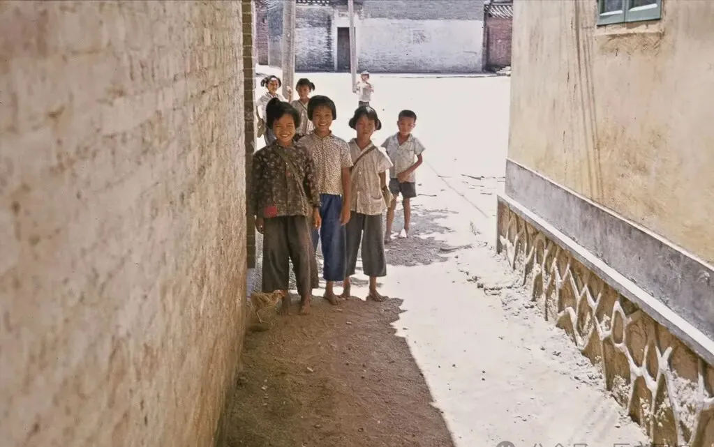 巷道窄窄,几位光脚小朋友站在墙边,阳光斜斜打下来,衣服旧但脸上挂着笑,没人催作业也没人喊回家,只要能在巷子里撒个欢,天黑前肯定有一堆故事。