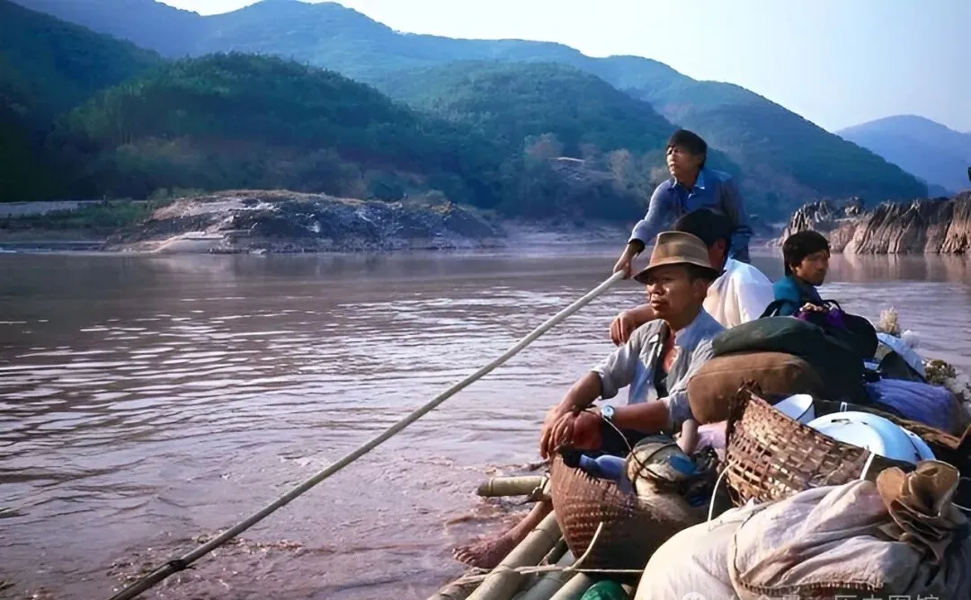 江面上这帮人正撑着竹筏过江,澜沧江水宽,两岸全是叠嶂的青山,船夫们把竹竿扎紧,人坐在筏上,脚边放着箩筐和行李,都是去赶场或者串亲戚的,爸爸那会说过,不坐竹筏等于没来过西双版纳,江水流急的时候,可得多使点巧劲,跳上跳下抬筏的动作一气呵成,现在江上多跑大船和游轮,像这样野路子的竹筏真是越来越少见了。
