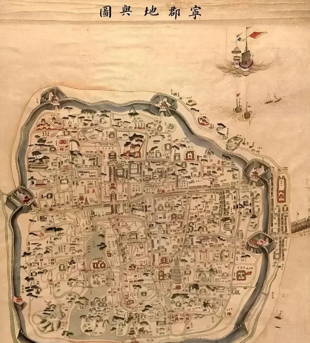这张地图是宁波古城的老地形图,画得密密麻麻,城墙绕得一圈连着远处的江水,图里标着各个门楼、舶船、城池建筑,看的时候仿佛能指着巷子口说出名字,家里的老人提起宁波过去的门楼和河道,总要边说边比划,“以前出门就能见到大水门,沿着城墙一圈,你天天走,路都不带重的”,那种踏实感,地图上仿佛还能摸出痕迹来。