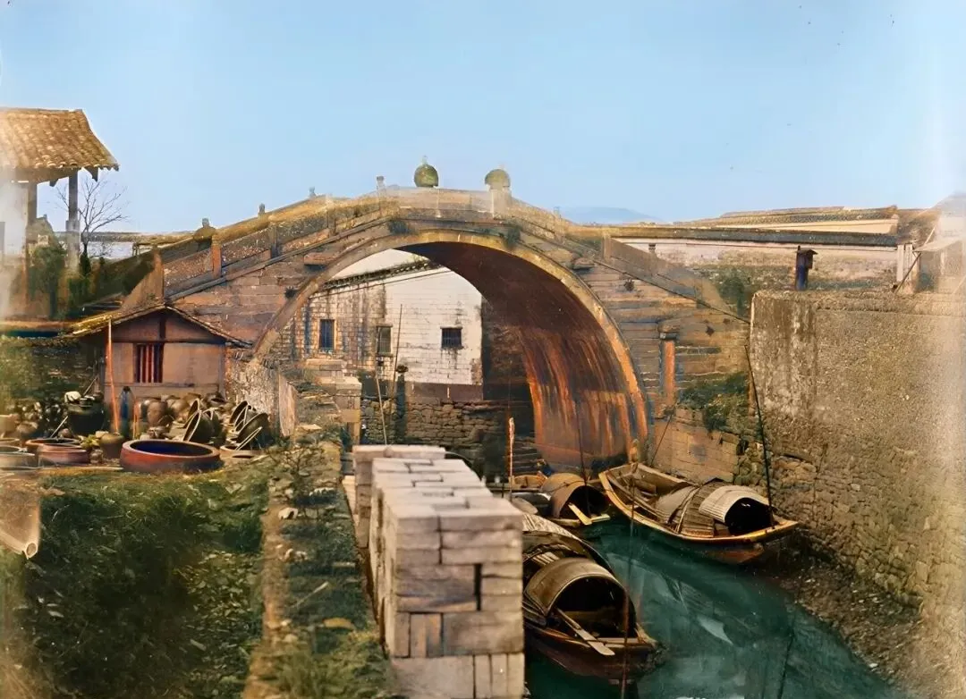 图里河岸边是一排陶瓷作坊,骢马桥下停着几只乌篷船,师傅们搬泥拉坯,扣着大泥盆,河水直接下去洗手洗脚,一派市井忙碌景象,小孩胆子大才敢溜进作坊看人拉坯,扭头就被大人拖出来,“别瞎跑,泥水脏着呢”,那时候手工业比现在强多了,人家没自动化,但招呼着一片邻里,现在只剩干净码放的摆设,手艺人的味道都只能存照片里。