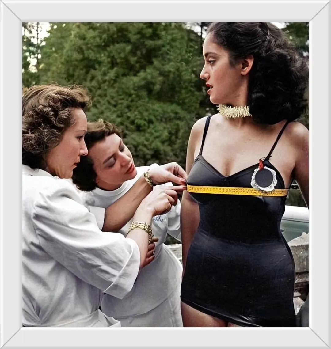 7. 1949年意大利选美赛场,工作人员正细致地为参赛佳丽测量身体数据。
