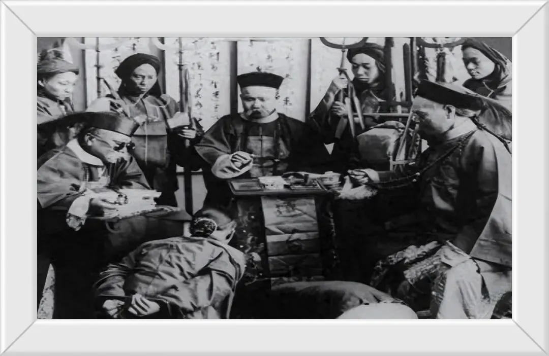 10. 旧时官府的公堂之内,正在进行案件的审理与问询。