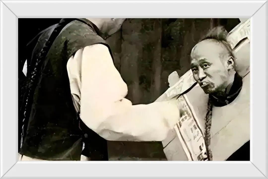 14. 被戴上枷锁的男子,不知道是不是真的犯了事情,在出发或者被遣为奴役之前,吃完最后一顿饱腹的饭食。