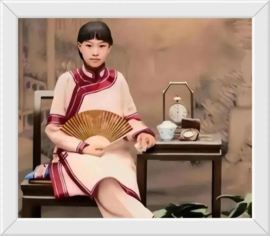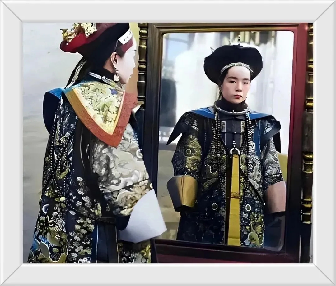 25. 清末铁帽子王善耆的嫡福晋赫舍里氏,她正对着一面雕花落地穿衣镜,她这一身华服与衣不蔽体的底层老百姓形成了鲜明对比。