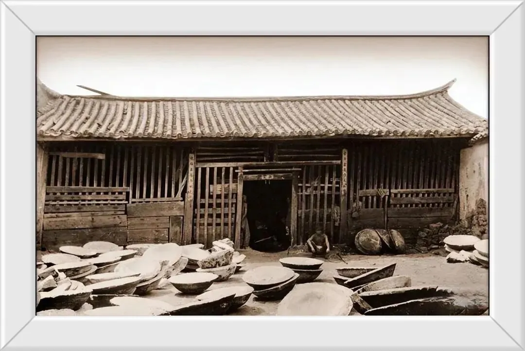 21. 1922年的云南加工厂外,这是加工大锅的小作坊,地面上随意摆放着不少成品,不知道有没有销路?