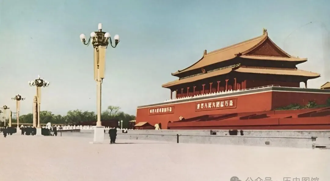 这张照片一看就有份老派气质,图中天安门红墙黄瓦,楼顶还冒着阳光的暖,前前后后立着不少高个路灯,底下一片宽敞,走着黑衣人群,气氛安静得不行,小时候总觉得广场得熙熙攘攘,哪想到五十年代的天安门竟这么空旷,老爸说那会儿要见到人拍照,大家都主动躲远点,生怕抢了景,和现在排队打卡拍照可不是一个路数。