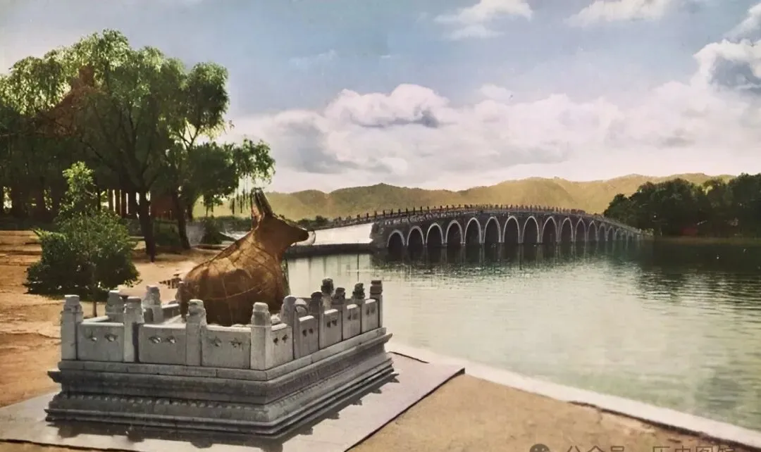 图上这尊铜牛,早些年可是母亲必带我去看的地方,铜牛卧在昆明湖岸,面前是十七孔桥,有点石雕栏杆护着,牛身子蹲得稳当,正对着湖水发呆,桥后头映着山影,那气势真不一般,小时候总问爸:“牛咋坐着不动啊”,他头也不回只说:“是镇水的宝贝呢”,听了半天也没明白,现在只觉得那份静谧和安然,很像那时北京的日头慢。