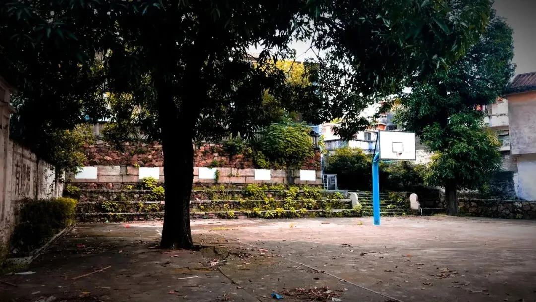 篮球架后面的上山通道有一对旧祠堂留下的抱鼓石。