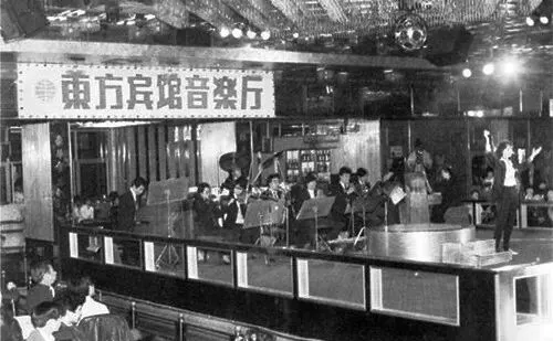 东方宾馆音乐厅。20世纪80年代初,音乐茶座开始兴起,喝茶,聊天,听音乐,是那个时候夜晚的一种休闲方式,现在看起来也很高雅。
