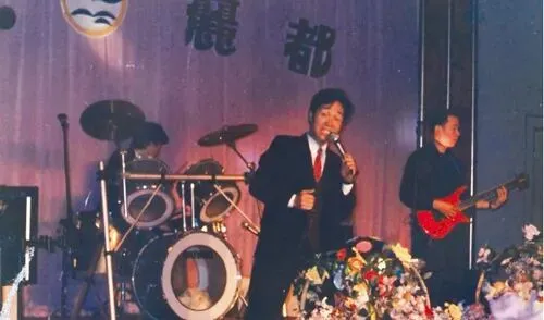 能够现场演奏的歌舞厅在当时并不多见。照片上,扎红领带的男子正在演唱着,后面有架子鼓,旁边有贝斯。