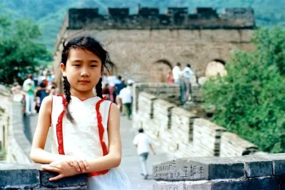 一个小女孩到长城游玩留影。