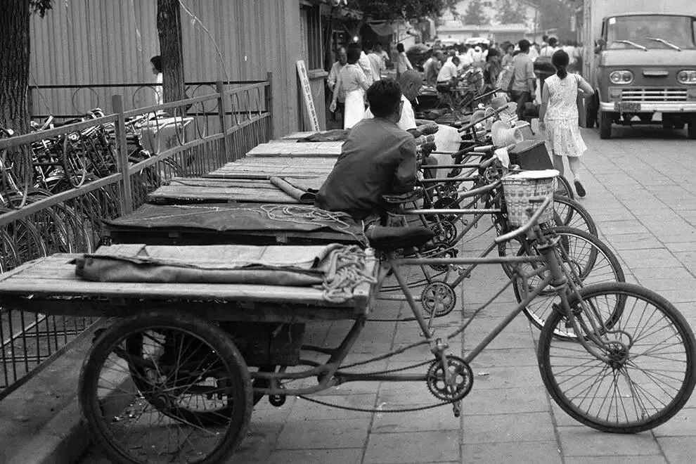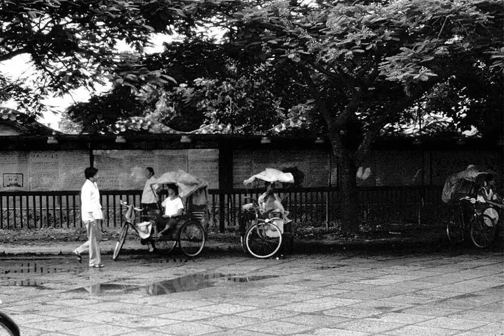 80年代,公园里,正在等待客人三轮车。