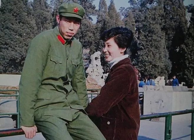 1981年元宵节期间,一名军人和一名女子约会,这种“三点红”老式军装是一代人的记忆。那名女子的发型非常时尚,脸上洋溢着幸福的笑容。