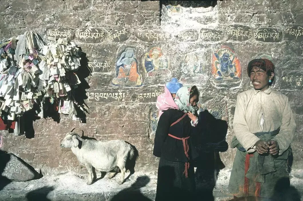 1981年:图为西藏大昭寺,两个藏族人和一头山羊。