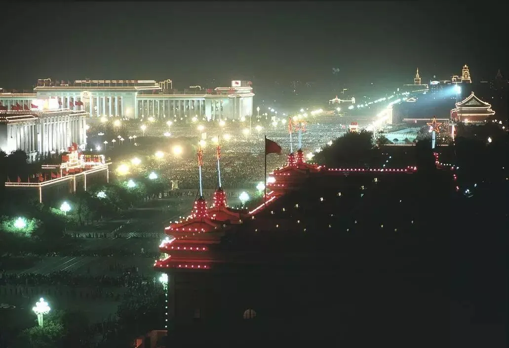 1981年:天安门的夜景,国庆节长安街上聚满了人,非常的热闹。