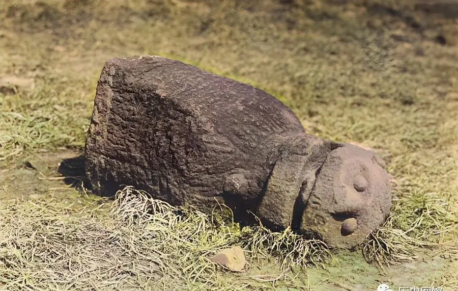 照片里那块搁地上的石兽,半截身子埋土里,脑袋歪斜,毛糙了,嘴边苔藓都爬满,乍一看像是狗脖子,又像小狮子,过去这些石雕都是护庙守门的“哨兵”,现在守着空地和风声了。