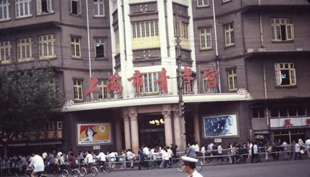 大上海电影院门口那张,特别能看出当年的城市气质。楼很气派,门口人很多,自行车一排排过去,像是看电影本身就是一件很正式的娱乐。现在买票进场太方便了,反倒少了那种“特地出门去看一场”的期待。