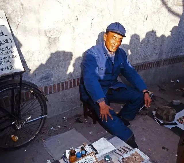 还有街边摆摊的手艺人,工具摊开在地上,人坐在小板凳上,旁边靠着自行车。没有招牌,没有装修,靠的就是一门手上活。这样的场景,现在几乎看不到了。