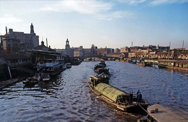 苏州河上的船也让人印象深。今天大家说起上海,想到的是高楼和天际线,可那时候,水路还是城市的一部分。船一艘接一艘,从桥下穿过去,两岸是成片老建筑,城市像是在水面上慢慢展开。