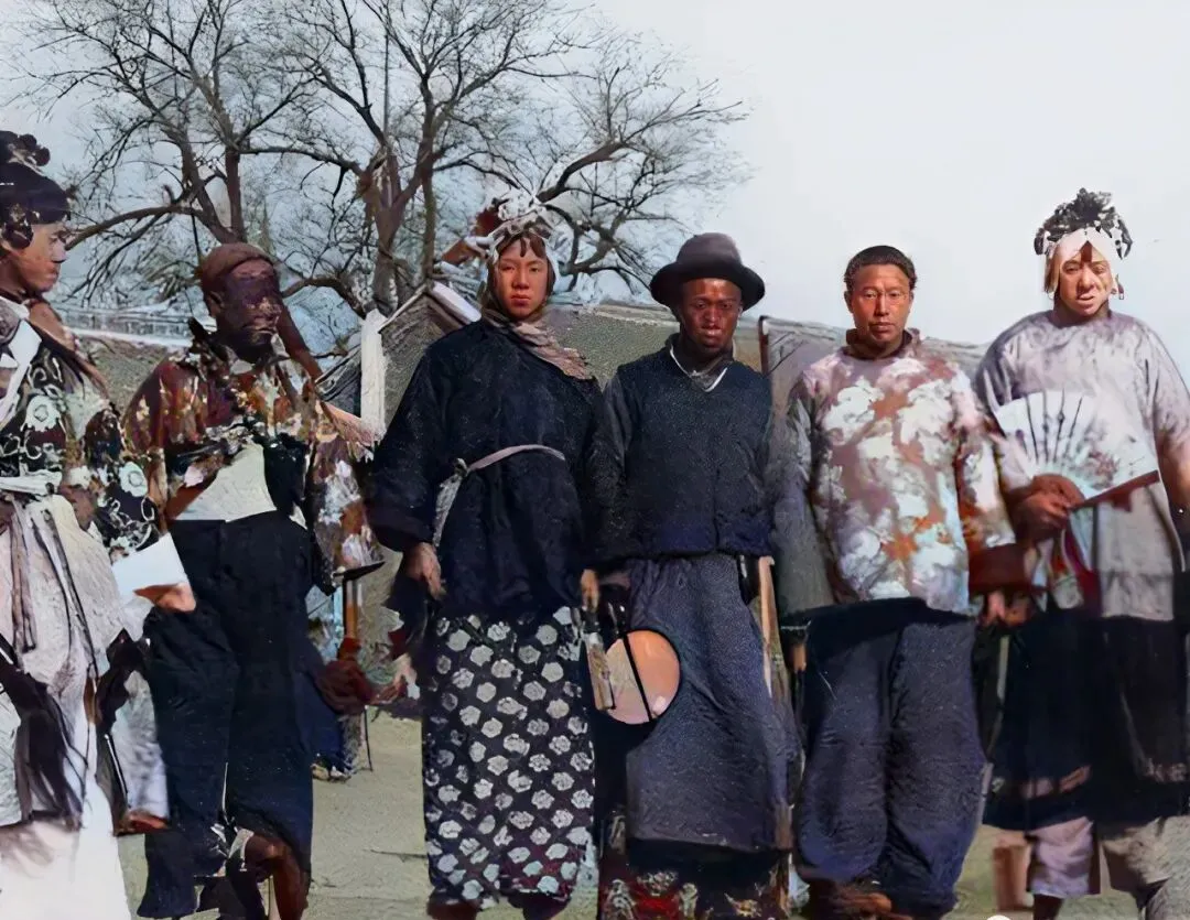 前面说的社火,就是照片里这一溜子人,大褂花裤,头上绑绸带,手里不是扇子就是马鞭,踩着高跷,全城都盼着热闹。