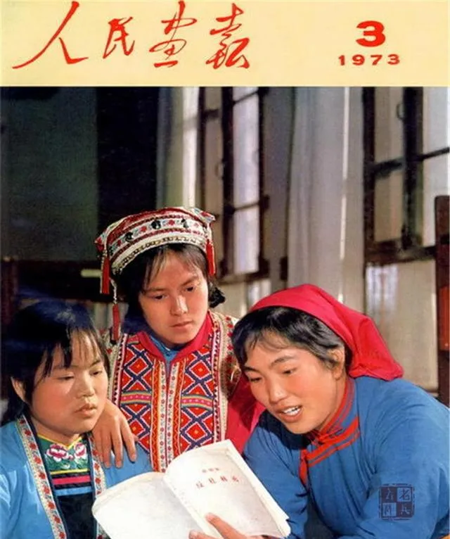 再看读书那张,《人民日报》封面下,几个姑娘围着一本书,头巾、民族服饰、窗边光线,都很抓眼。现在看,这种画面最难得的地方,是安静里有认真。不是摆拍式地“热爱学习”,而是真有人读,有人听,有人跟着看。还有那盏油灯下看书的孩子,桌面黑漆漆的,灯火却把书页照亮了一小块。很多人小时候可能都见过这种光,暗是暗,但人会把头凑得很近,硬是把书念下去。