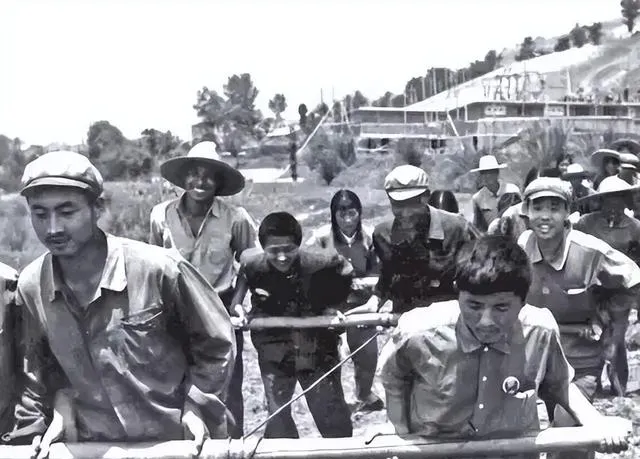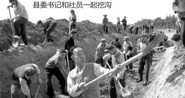 这几张连起来看,那个年代的生活节奏一下就出来了。挖沟那张最有冲击力,沟边站满了人,铁锹一下一下扬起来,前头那位老人也在抡锹。说实话,这一点我是真没想到。现在我们说“集体劳动”,容易想得很空,可照片里不是概念,是土是真的土,汗是真的汗。