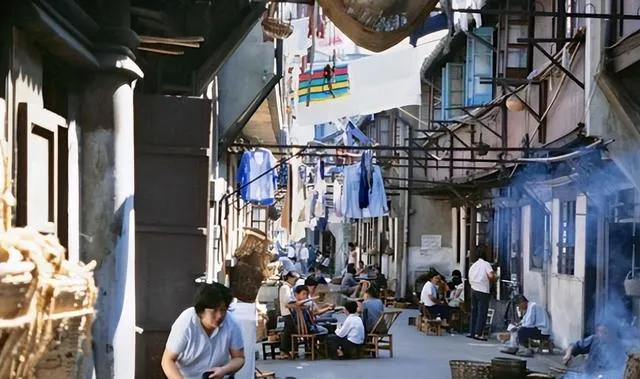 胡同那张彩色照片也很有意思。晾衣绳横在半空,旧楼贴得近,门窗不讲究整齐,可整条巷子里都是人气。有人坐着聊天,有人生火做饭,烟气往上飘,衣服在头顶晃。这样的场景,现在大城市里不太容易见到了。地方挤是真挤,可邻里之间也是真的近。你家炒个菜,隔壁闻得见;谁家来客了,院里的人差不多都知道。