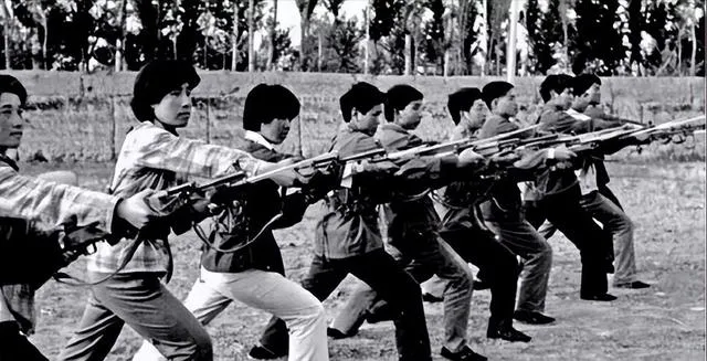 民兵训练、墙上的照片展板、纺线的女工,还有最后那张高大的工厂车间,都在提醒我们:那个年代的生活面很宽,不只是田间地头。有人在农村,有人在车间,有人在课堂,有人在巷子里过日子。空间不同,穿着不同,手上的活也不同,但人身上那股朴素、专注、带点硬朗的精神头,倒是挺一致。