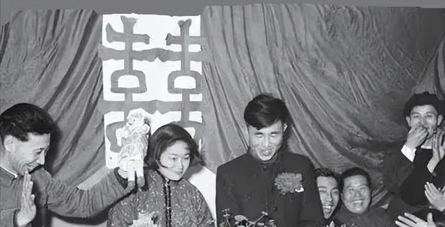 婚礼那张更是典型。背景不复杂,布帘一拉,“囍”字一贴,新郎新娘往中间一站,旁边人笑着看、鼓掌、起哄。没有豪车,没有司仪串词,没有那么多流程,但喜气一点不少。现在婚礼越来越讲排场,反倒是这种简单,越看越有味道。