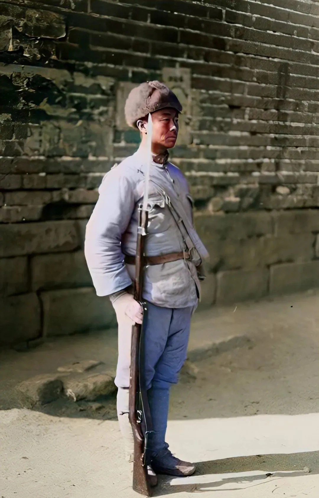 图中站得笔直的这位叫中国卫兵,时间定格在1932年,照片上的兵哥穿一身棉军装,帽子压得正,脚下的军靴带着土,枪杆也被他攥得死紧,人站在城门口,肩膀往后一夹,就带着不让人靠近的气势,脸上没笑,只把眼神往前一瞪,硬是把那名偷偷摸摸的日军摄影师吓了一跳。