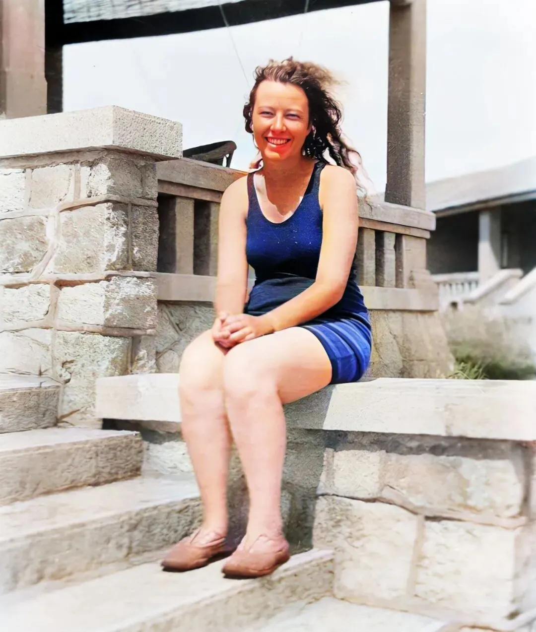 有些老照片摆眼前,跟翻家里旧抽屉那味儿差不多,纸上一片淡黄色,像钥匙似的能把人一把拽进八九十年前的夏天,石阶上坐着个陌生面孔,一个大高个的洋女人咧嘴笑得特别阳光,细看清晰得能看见阳光下的绒毛,头发一阵风就吹乱,身上的背心短裙当年在北戴河多稀罕,现在却透着自在洒脱,别看场景陌生,感觉却熟得很,好比小时候院里头大人喊着拍照那一刻,也不忍心不起身凑热闹。