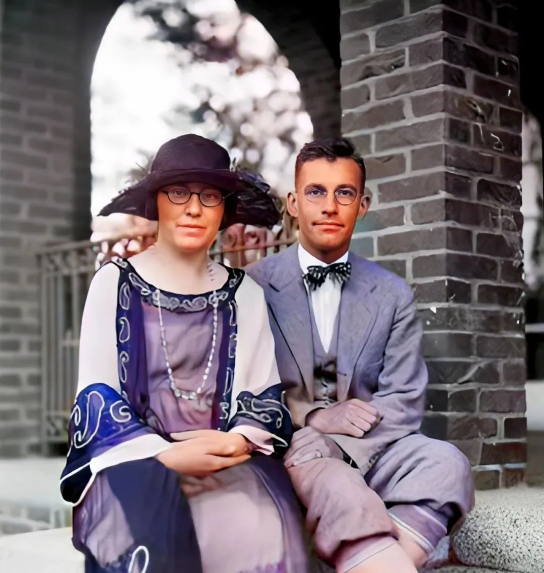 这个老照片上两个人并肩坐,黑帽子女装和西装领结一搭,年头一看就是民国那会儿,“夫妻合影”放到今天早就三天两头拍,过去可是稀罕事,新婚时一起从美国来中国,鞋袜裤管收拾得干净,一笑就是纯粹的温柔,婚姻在旅途里添了新鲜感,也夹带不少异国味道,他们在北平、在北戴河留下过脚印,日子虽远,照片还留着。