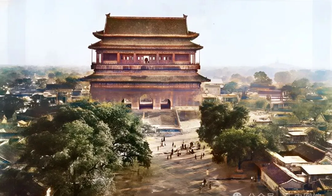 图中老北京鼓楼,琉璃瓦下的红墙,在烟火气里藏着千百家人的盼头,楼下的小巷子里吆喝声一片,大人晾晒被褥,孩子拾柴火,天边有风吹过,岁月就从斑驳门洞里溜走了。