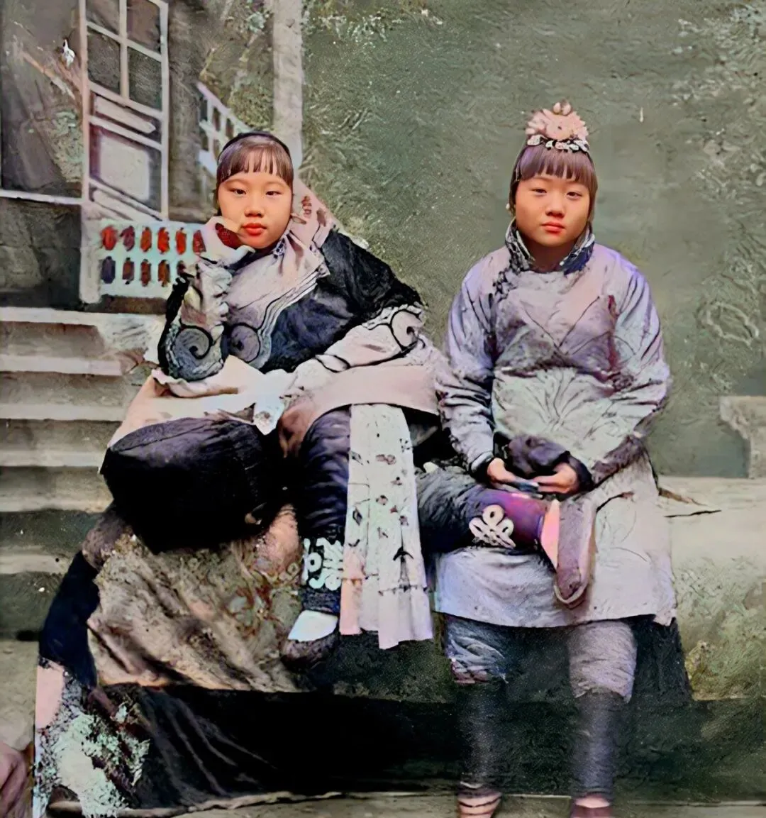 这对孪生姐妹,衣裳零碎花色扎眼,面带稚气,旧时的青楼未必都是唱戏卖笑,那会儿穷人家女娃,没得选路,成天想着有没有好人家相中,偏人生总难如戏里演得那么顺。