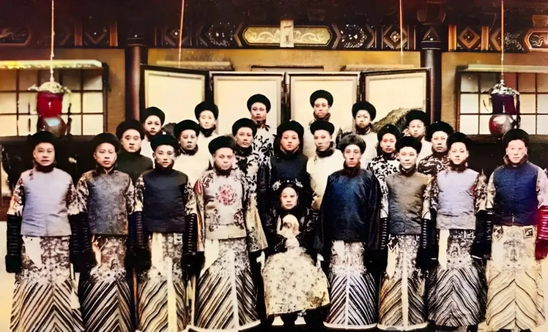 这张团体照,正中间坐着的是光绪帝的妃子瑾妃,身边挤了二十来个穿蟒袍的太监,衣摆拖得跟戏台子上一样,谁见着不得说句气派,这在电视剧里哪舍得给这么大场面,生活里她们多半过得真是衣来伸手饭来张口,味道别提了。