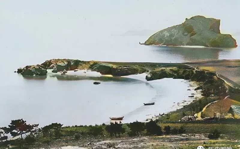 30年代大连老照片,日本捕鲸船游长山岛,海边盐田稀见