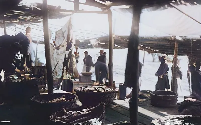 海边的市场不像现在有塑料棚,顶多几块旧布一遮,摊位上箩筐满满全是海鱼,有人弯着腰选鱼,有人吆喝还价,离海岸不远,那腥咸的海风混着人声,成了大连滋味的一部分。