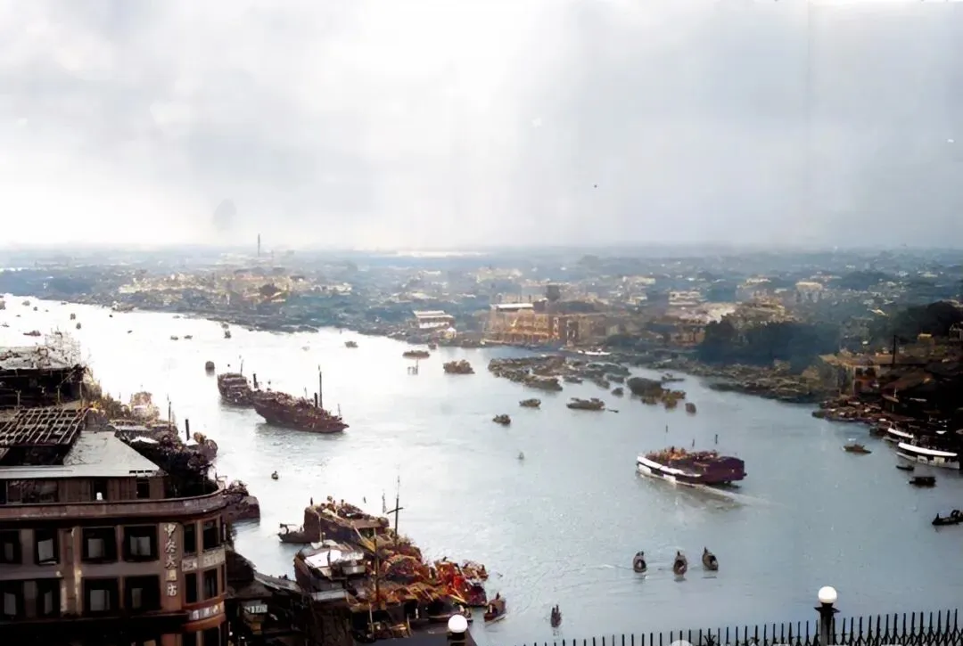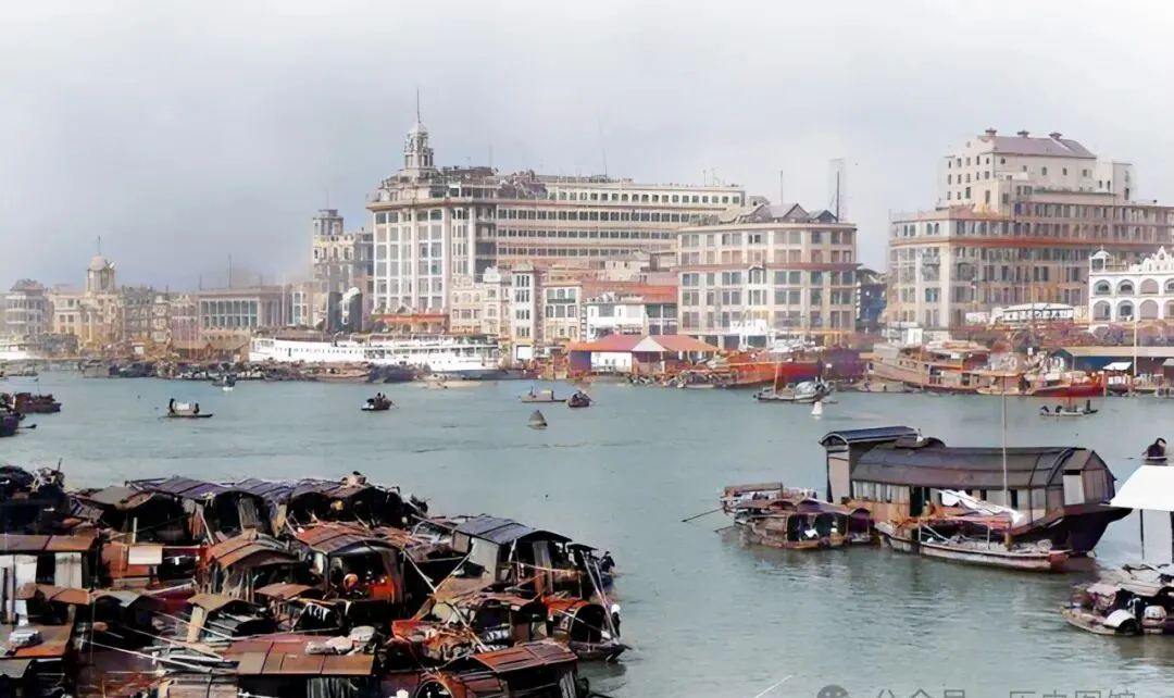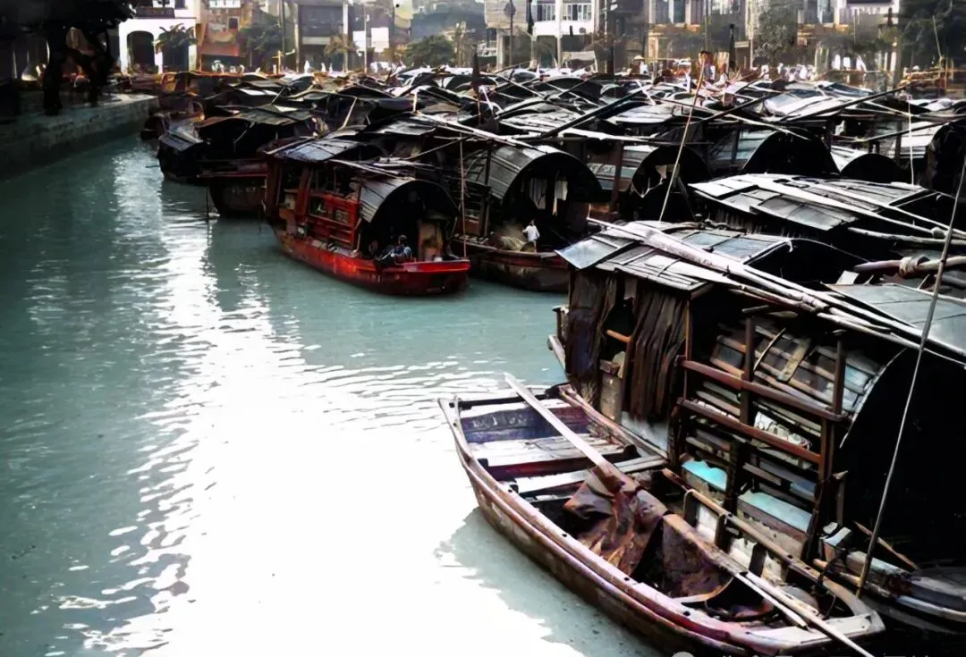 大楼一排排靠着水,背后高楼林立,前头河面上小船飘着,若不是照片在手,都不敢信那会儿的广州能有这阵仗。